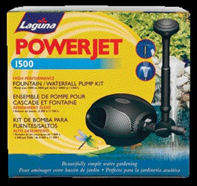 Far better than a pump that sells for twice the price, November 20, 2011 Amazon Verified Purchase This review is from: Laguna PowerJet 1500 Electronic Fountain Pump Kit (Misc.) I have a 25' winding stream, several waterfalls, 2 ponds, 2 fountains. That means I'm no stranger to filters, pumps, weirs, fountains. I was using a pondmaster in the pond that this replaced and it was reliable but quite frankly, poorly designed. In that I was constantly replacing the pre-filter which they improved upon design-wise, there was no handle to lift it out of the pond so I stupidly grabbed it by the cord but I didn't want to reach in the pond and hope the prefilter hadn't come off again and stick my finger in the propeller...however, had I loosened the cord from the base electricution would have been a worse option.